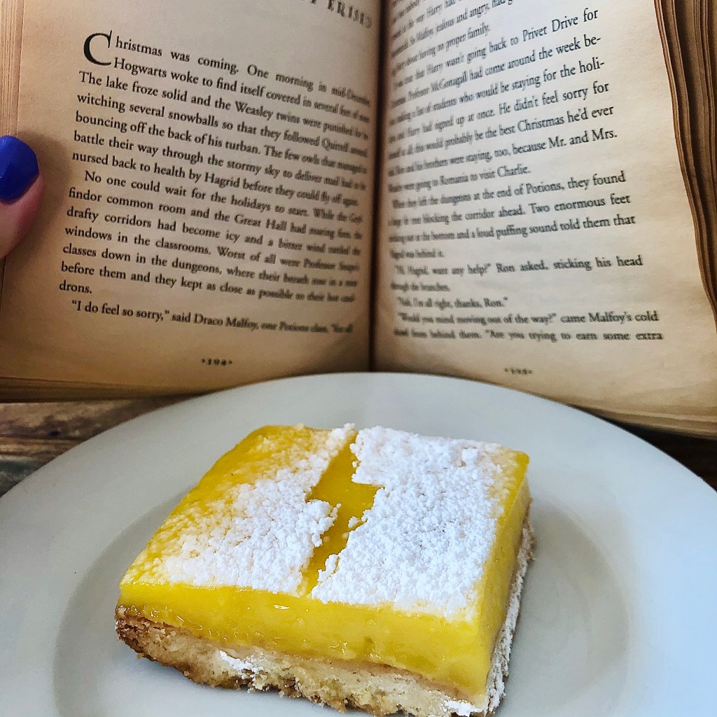 17. Use your cleaned fine mesh and put your powdered sugar in it. Gently hit the sides of your mesh strainer over your bars to shower powdered sugar on them.